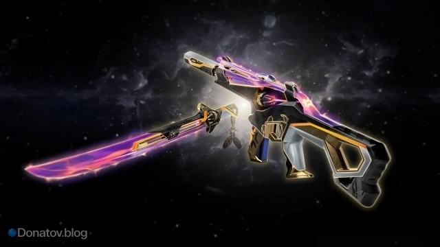 Главная особенность скина — финишер «Супернова». Когда игрок убивает последнего врага в раунде, запускается анимация: тела всех поверженных противников застывают в золотых сферах и начинают вращаться вокруг трофея VCT в окружении астероидов. После этого можно зайти в эпицентр и начать отстреливать астероиды — это работает как встроенный тренажёр для меткости.
