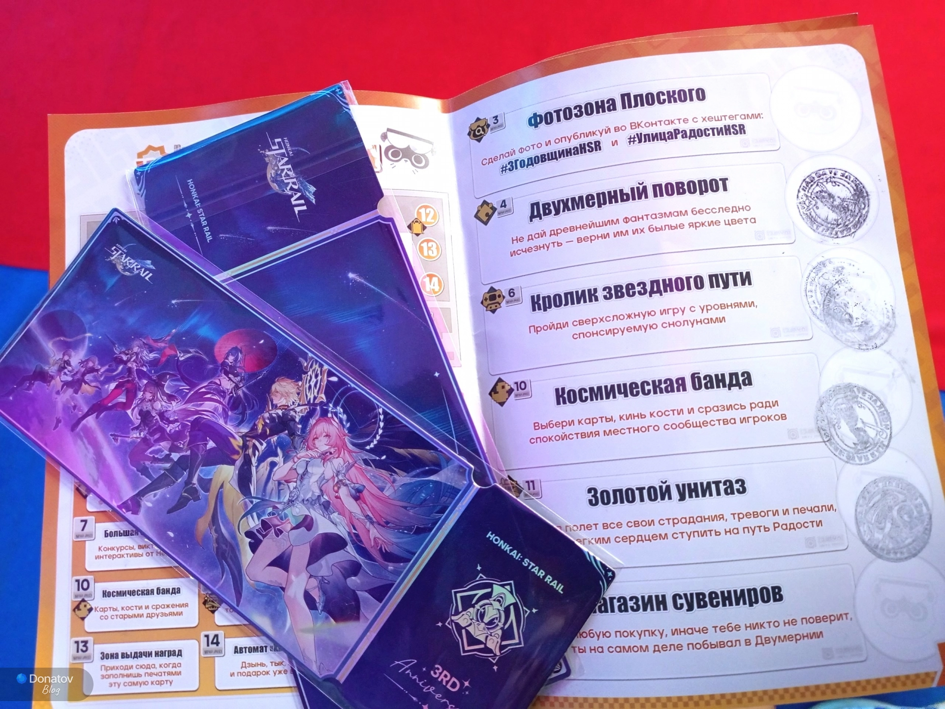 Каждый пришедший на годовщину Honkai: Star Rail получит голографический билет прямо на входе и другие бесплатные призы за проставленные печати и некоторые другие активности (по большей части это карточки с героями игры). Также на мероприятии действует специальный магазинчик с лимитированным мерчем.