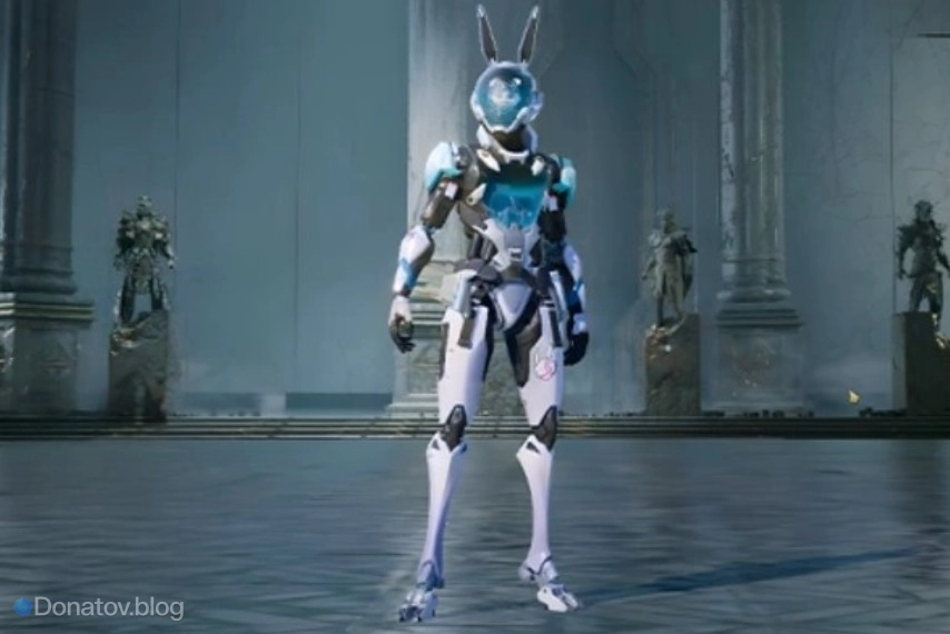 Разработчики соединили две идеи: жёсткую кибер-эстетику и кавайный образ. В результате получился скин боевой киберброни и стиля аниме-меха, управляемый крошечным кроликом.