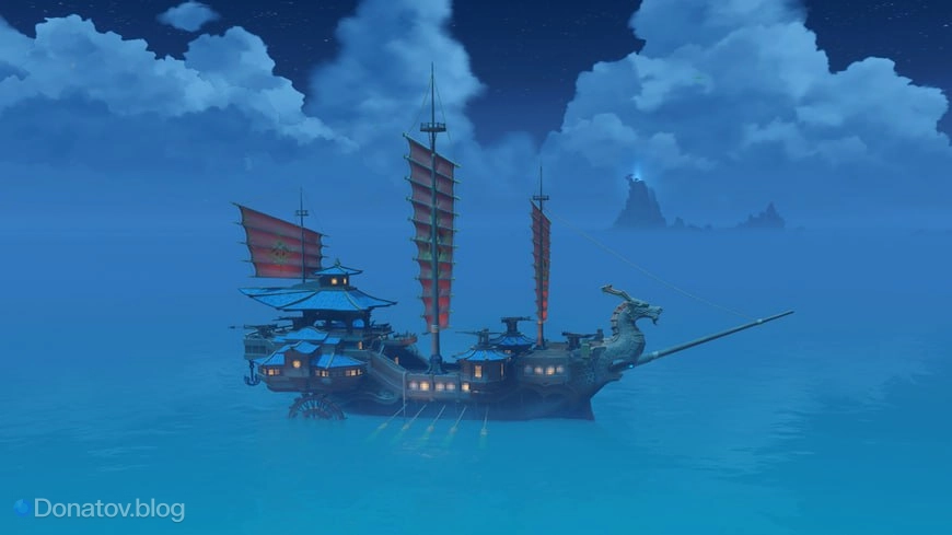 После разговора с Ацуко вам предстоит найти сам корабль. Это важная часть этапа «Путь сквозь шторм» в Genshin Impact. Если вы уже выполняли задание «Одинокий корабль в Гуюнь», у вас будет активна точка телепортации прямо на палубе судна. Если же нет, придется добираться своим ходом.