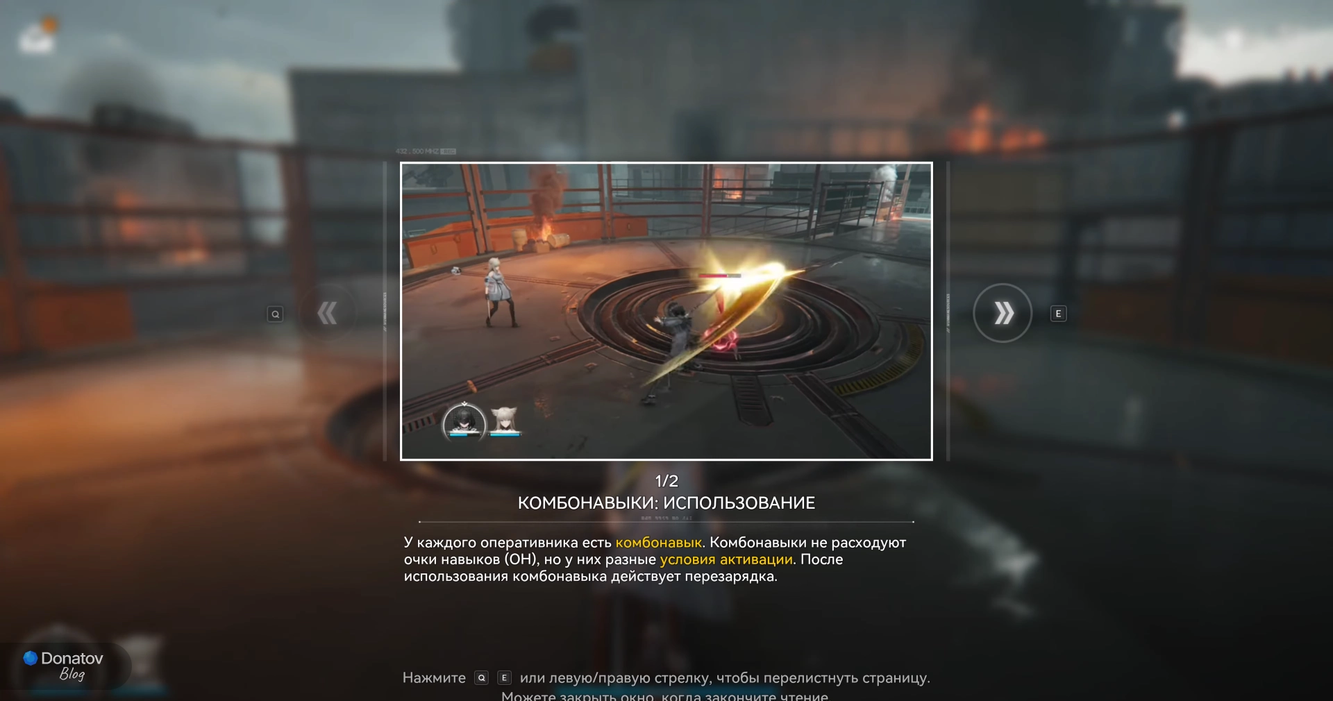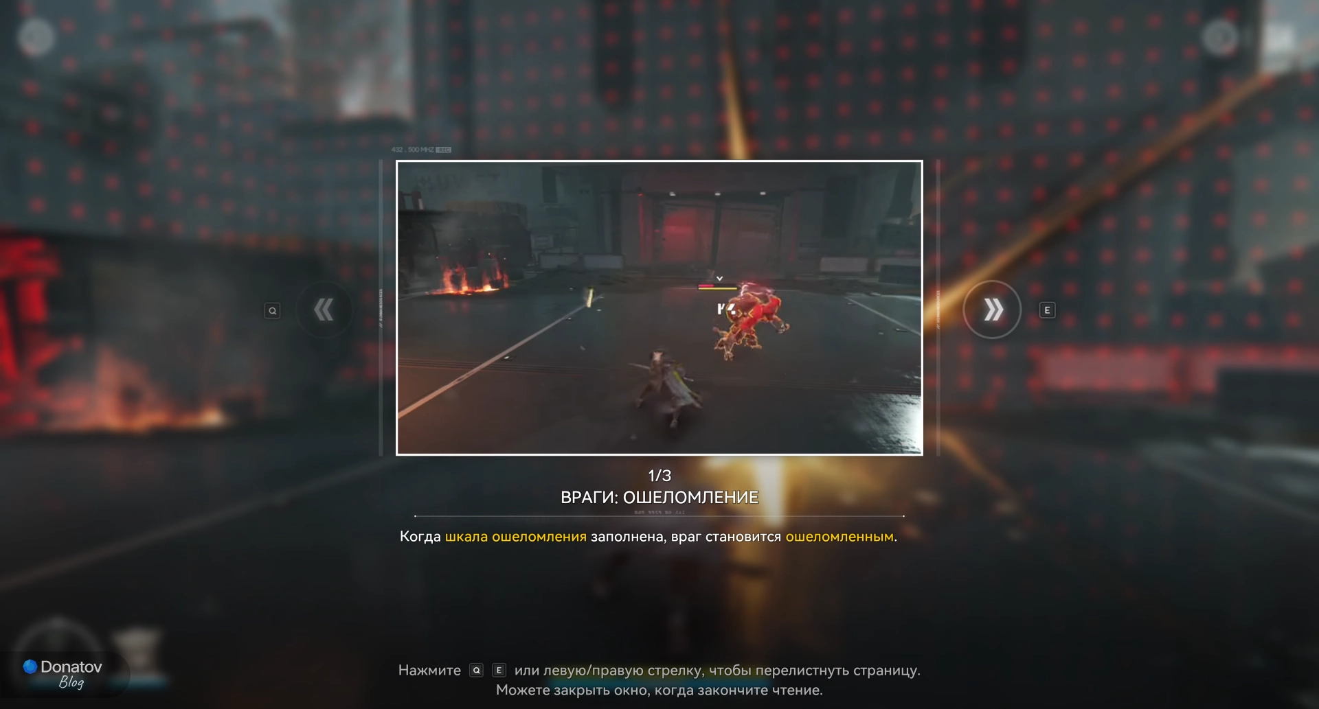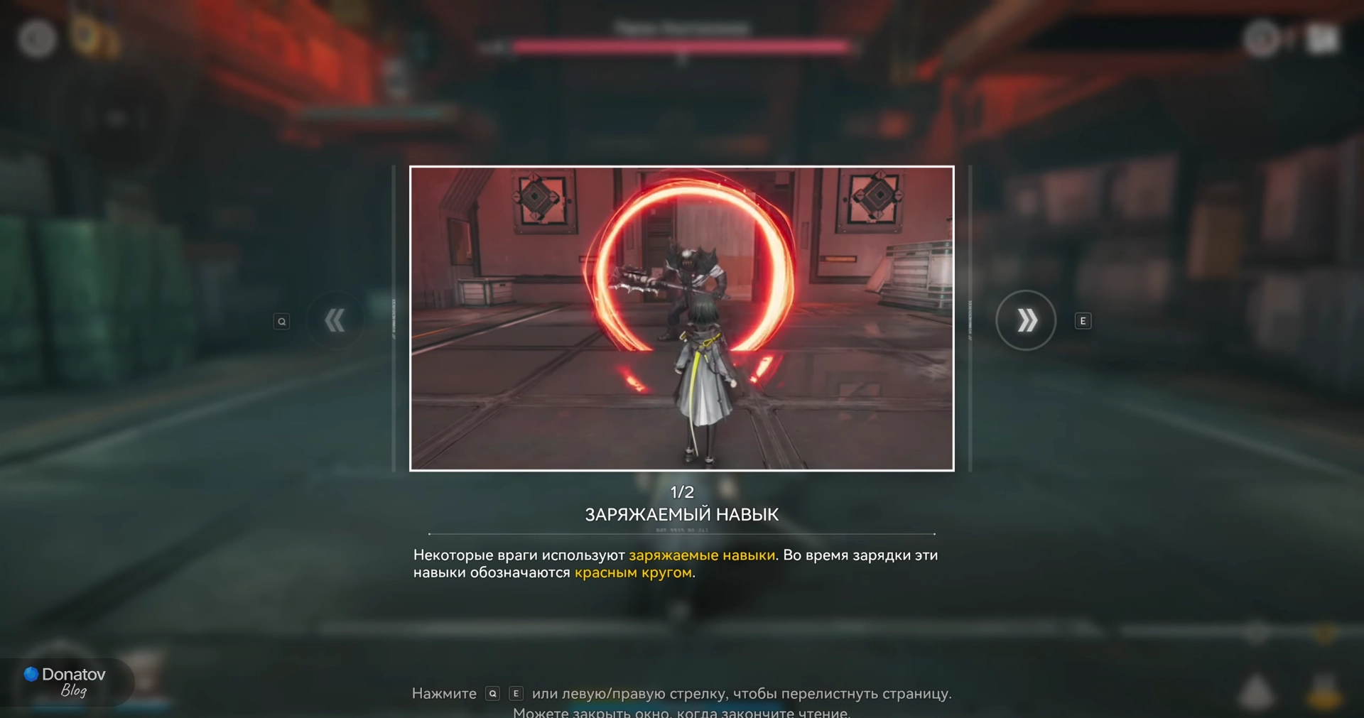 Игрока в этот момент учат тому, что некоторые противники используют заряженную атаку, которая обозначается красным кругом. Этот удар можно прервать, если использовать навык оперативника, наносящий урон. После этого атака врага отменяется, а также он получает большое количество ошеломления.