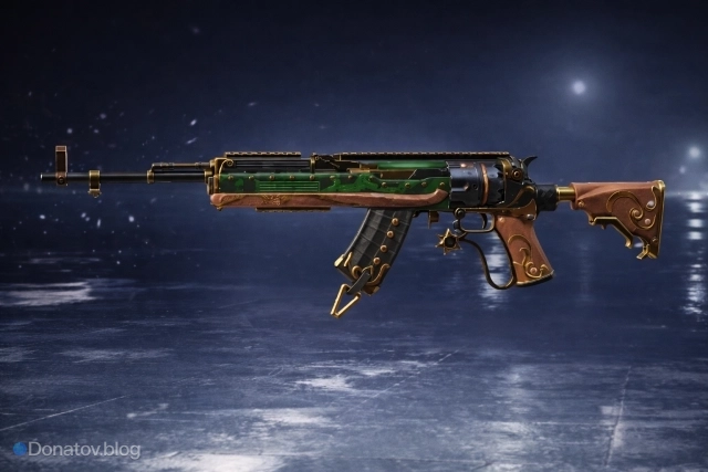 Скин «Призрачный ездок» на СКС в PUBG Mobile выполнен в стимпанк стилистике с позолоченными элементами. Его внешний вид отсылает к мрачной эстетике, что сразу выделяет оружие на фоне стандартных обликов.