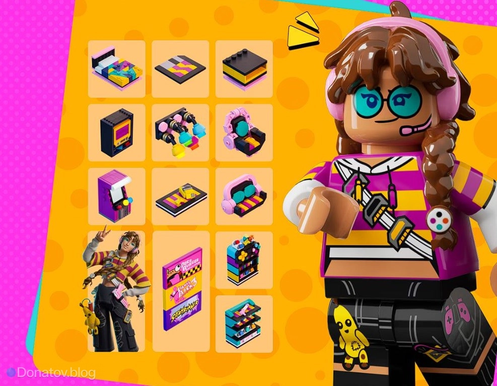 Главная звезда набора — костюм Pixelle, доступный в двух стилях: классическом для Fortnite и LEGO-варианте. Таким образом, игроки смогут использовать образ как в привычных сражениях, так и в кубическом мире LEGO Fortnite.