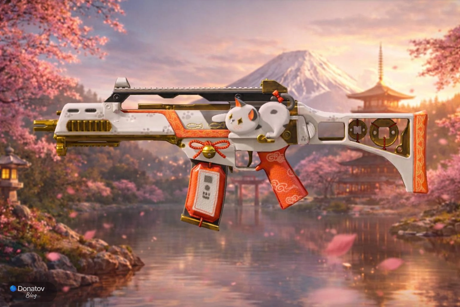 Ствол G36C «Процветание» (Prosperity) — это самый добрый и уютный облик в коллекции, выполненный в белых и золотых тонах. На корпусе этой пушки изображён милый котик, а сам дизайн дополнен красными шнурками с золотым колокольчиком и узорами в виде лапок.