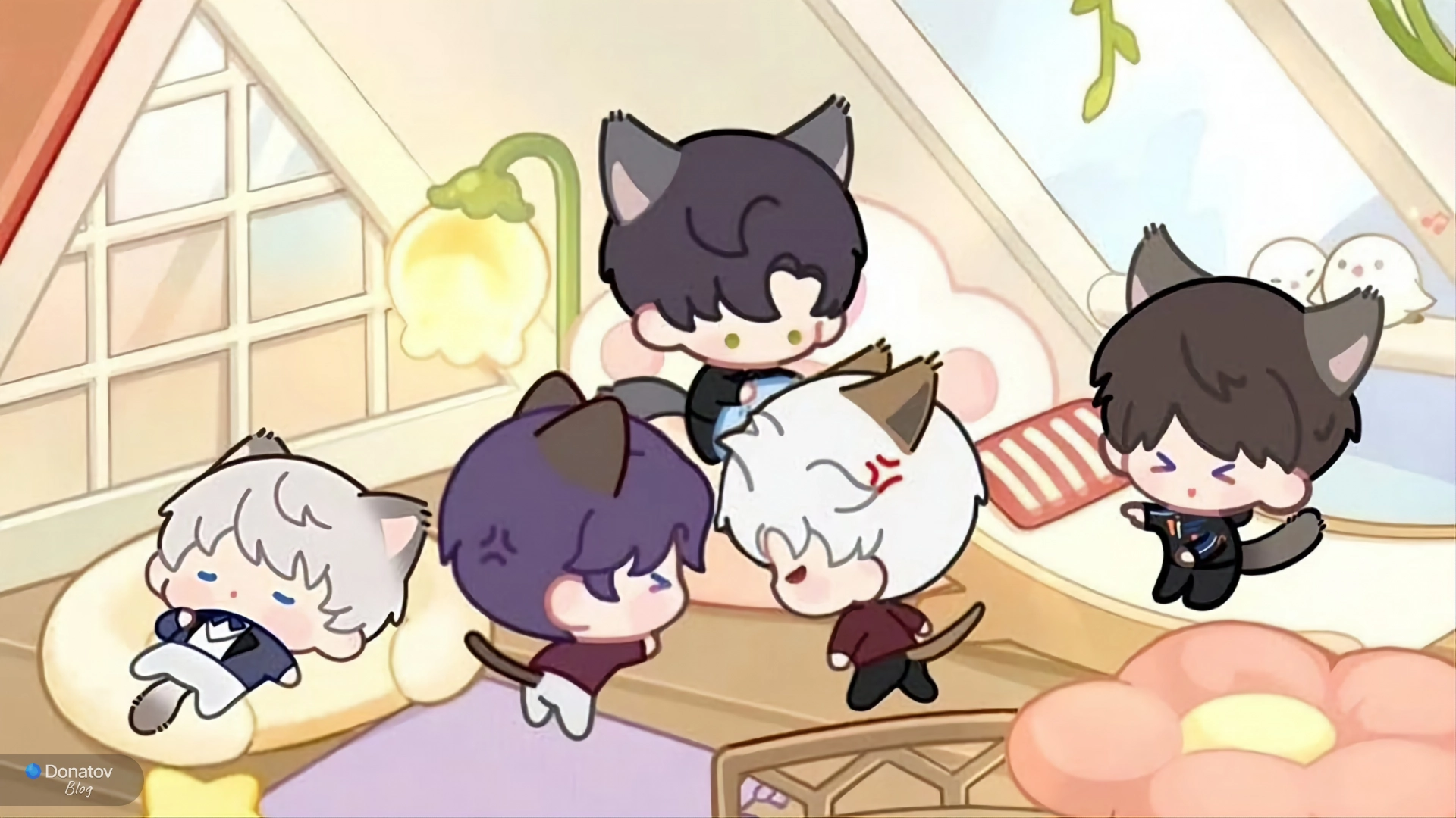 Вы можете выбрать котика, связанного с персонажем: Ксавьер, Зейн, Рафаэль, Сайлас или Калеб. Котик появляется в разных позах и настроениях, периодически меняется и «разговаривает» — выводит короткие реплики: скучает, зовёт вас в игру или просто реагирует на происходящее. При желании можно обновить его состояние через кнопку refresh.